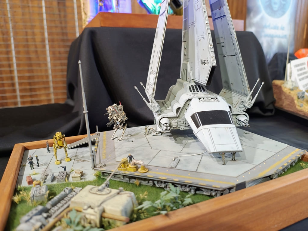 Là il est avec le pont d’un Destroyer Stellaire Impérial ; on l’a pas laissé entrer avec le reste de la maquette dans le salon.